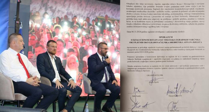 Nakon što su i zvanično objavljeni rezultati Lokalnih izbora u našoj zemlji, otvoreni su i pregovori oko formiranja većine u Gradskom vijeću. Gradonačelnik Srebrenika Adnan Bjelić jučer je sa Socijaldemokratskom partijom BiH Srebrenik, NiP, Našom strankom i Strankom za BiH potpisao Sporazum o koalicionom djelovanju stranaka i gradskih vijećnika okupljenih oko gradonačelnika Srebrenika.