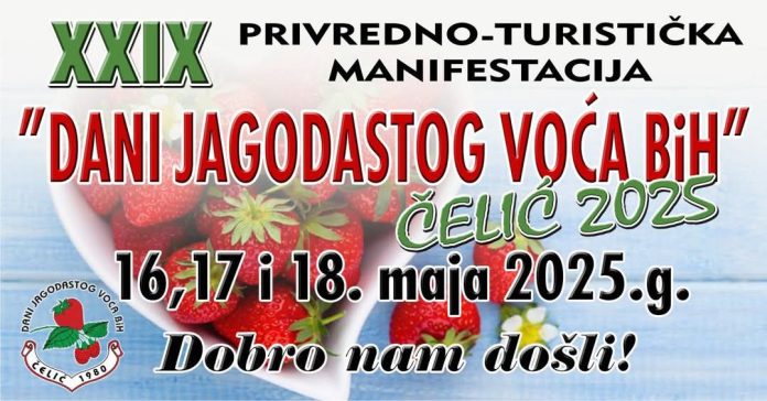 Ova značajna manifestacija, koja slavi domaću proizvodnju, okuplja proizvođače jagoda iz cijele Bosne i Hercegovine, ali i brojne izlagače iz oblasti prehrane, poljoprivrede, turizma i rukotvorina. Kroz tri dana, Čelić će postati mjesto susreta tradicije, kvaliteta i privrednog potencijala ovog kraja.
