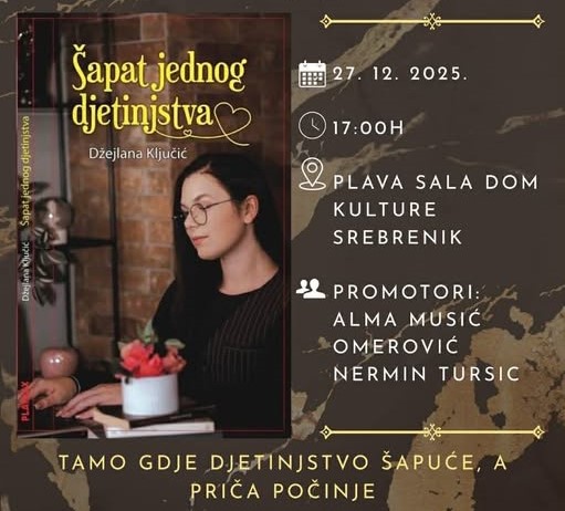 U vremenu u kojem svakodnevicu mladih sve više oblikuju ekrani, društvene mreže i brzi sadržaji, postoje i oni koji biraju drugačiji put – put pisane riječi, tišine, razmišljanja i emocije pretočene u stihove i rečenice. Jedna od njih je Džejlana Ključić, petnaestogodišnja učenica prvog razreda Poslovno-tehničke škole, smjer poslovno-pravni tehničar, koja će uskoro javnosti predstaviti svoju prvu knjigu pod nazivom „Šapat jednog djetinjstva“.